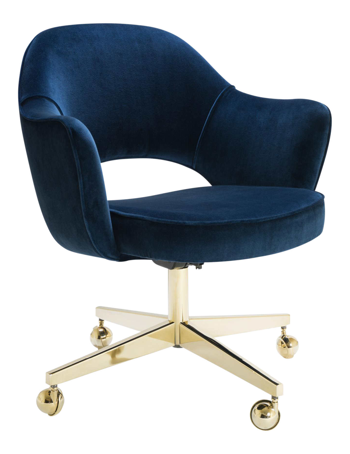 Saarinen Executive Arm Chair In Navy Velvet Swivel Base 24k Gold Edition Chairish