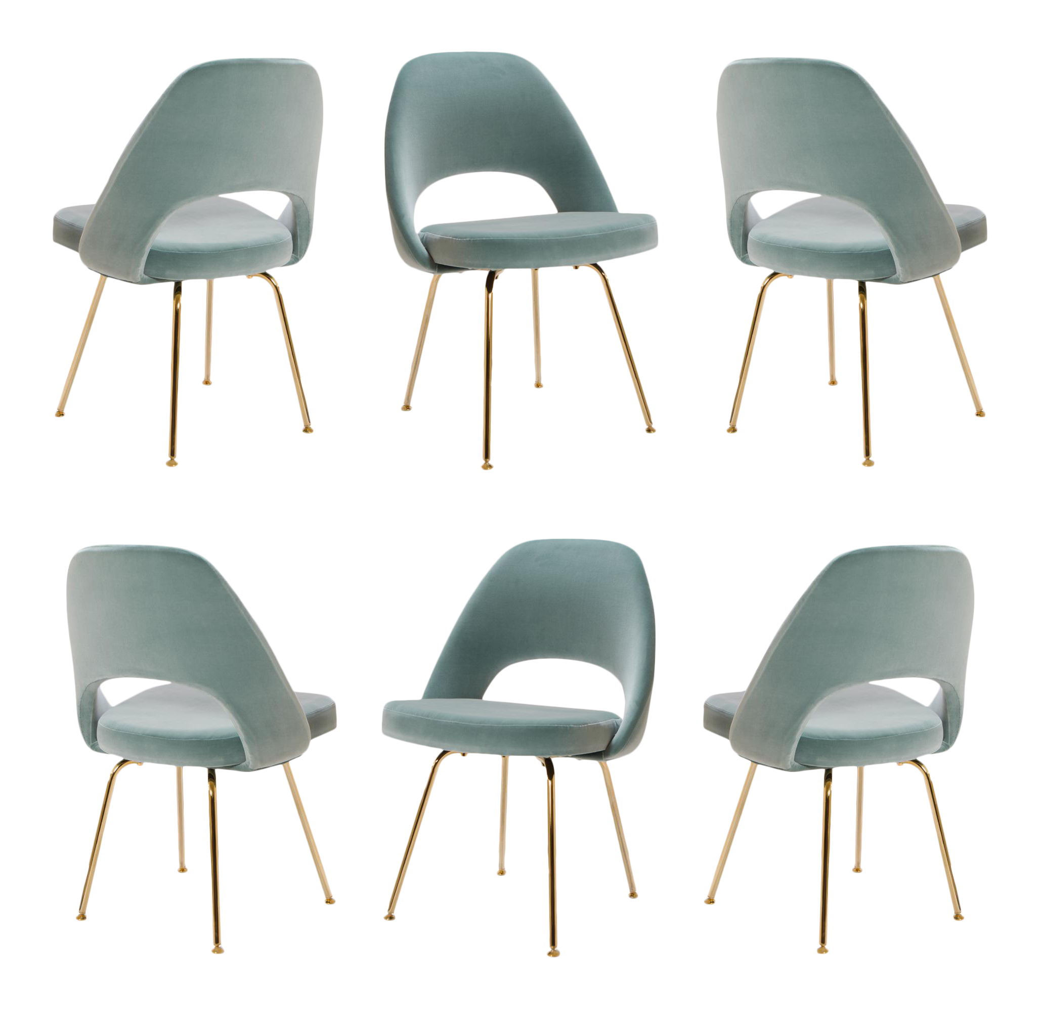 Original Vintage Saarinen Executive Armless Chairs Restored In Celadon Velvet Custom 24k Gold Edition Set Of 6 Chairish